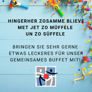 Danach stoßen wir bei Getränken an und teilen ein buntes Buffet. Beiträge fürs Buffet sind herzlich willkommen!